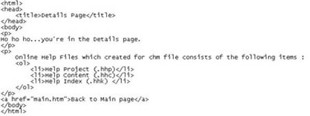 1. Create simple htm file to put into the content online help. Say it main.htm and details.htm