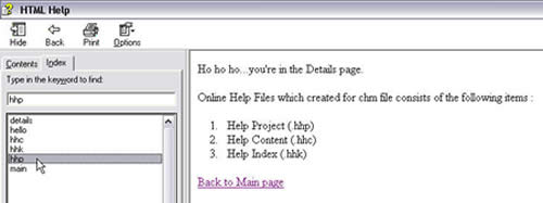 - Help Index (.hhk). Index file for searching keyword typed by user.